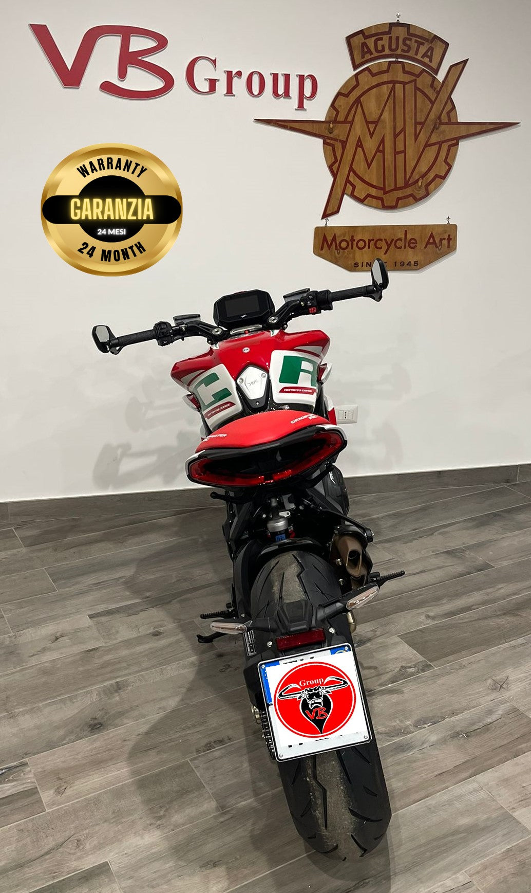 La garanzia ha durata di 24 mesi dalla data di sottoscrizione del contratto. Il cliente è obbligato ad effettuare almeno un tagliando annuale presso la nostra officina ed è tenuto al controllo gratuito dell'olio ogni 1000 km. La società VB Group si impegna al ripristino delle parti in garanzia nel minor tempo possibile. I tempi di riparazione possono variare in base alla disponibilità dei ricambi presso la casa madre. La garanzia non include i componenti elettrici (es. batteria, regolatori di tensione etc.) e le componenti soggette ad usura (es. pneumatici, freni, frizione etc.) Qualsiasi intervento operato da altre officine invalida la garanzia.